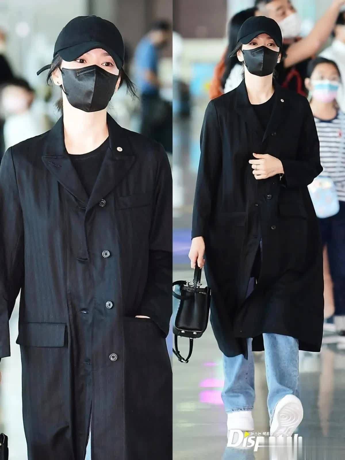 配饰上,宋慧乔毫不含糊。手里提着的黑色手提包小巧精致,与风衣色彩呼应;白色运动鞋与牛仔裤形成色彩对比,浅色系单品瞬间打破全黑的沉闷,让造型更显清爽。更重要的是,她头顶还戴着黑色的棒球帽,休闲时髦感拉满。